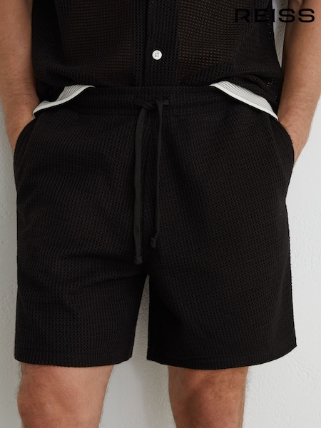 Reiss Black Alvo Textured-Wave Drawstring Shorts