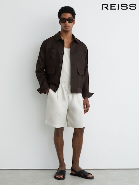 Reiss Mushroom Brown Barges Linen Drawstring Shorts