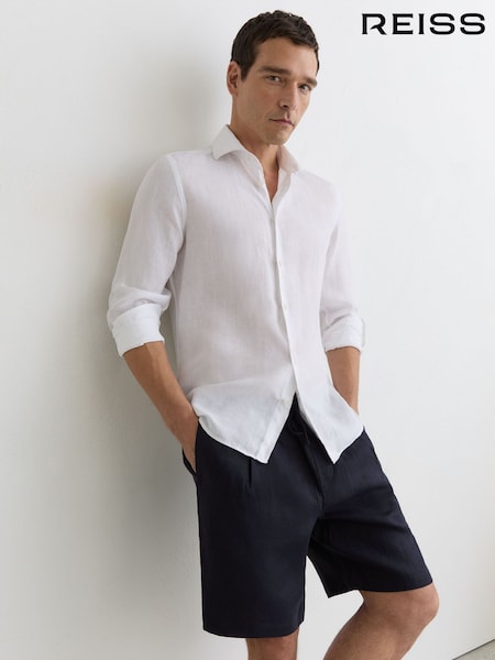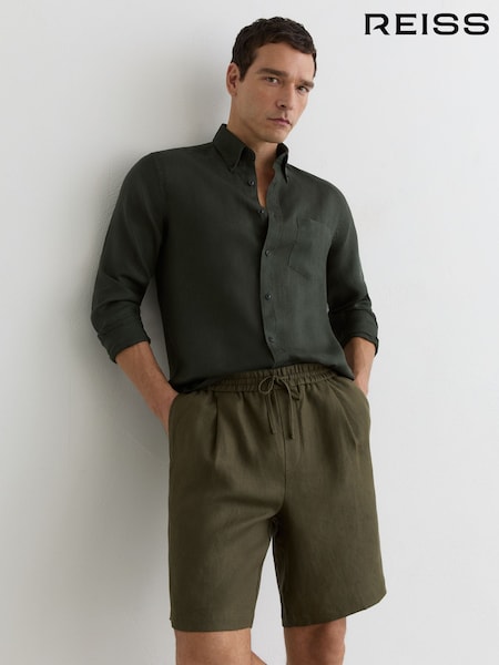 Reiss Thyme Green Barges Linen Drawstring Shorts