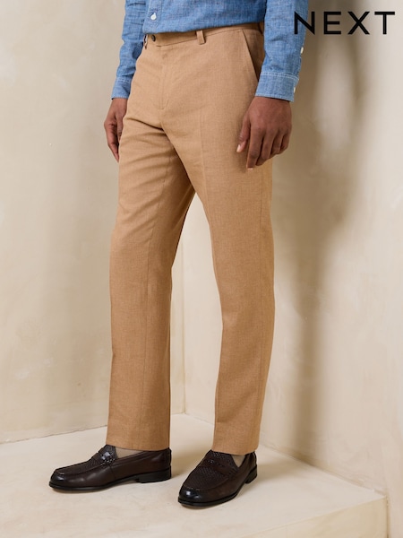 Brown N.Premium Tailored Fit 100% Linen Suit Trousers