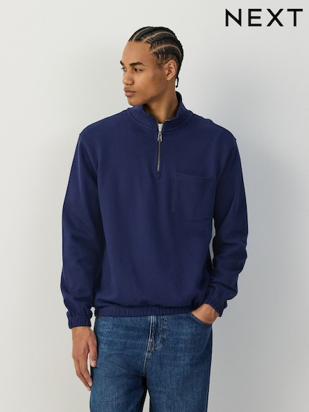 Blue Tunneled Hem Lightweight Jersey Zip Through Funnel Neck Sweatshirt