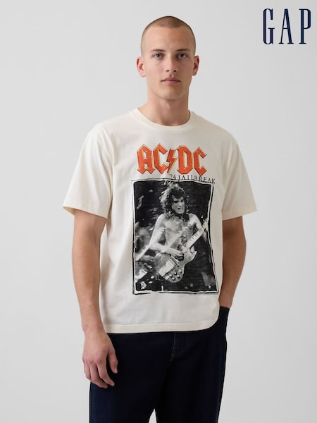 Gap White ACDC Relaxed Graphic T-Shirt