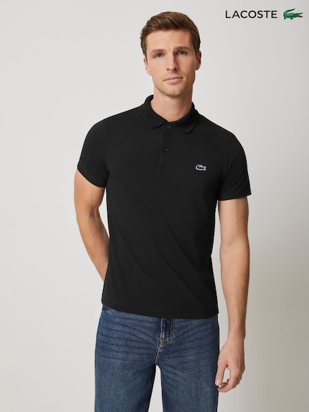 Lacoste Black Chrome Regular Fit Cotton Blend Ottoman Polo Shirt