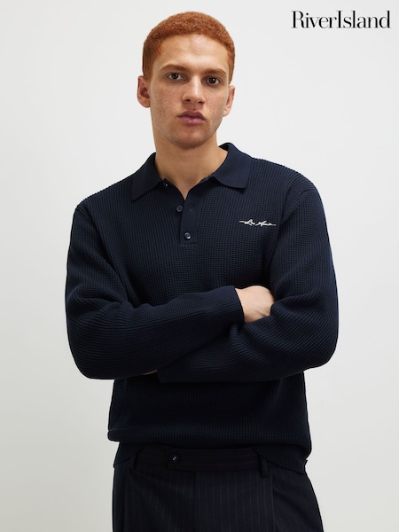River Island Blue Regular Fit Long Sleeve Ottoman Tipped T-Shirt