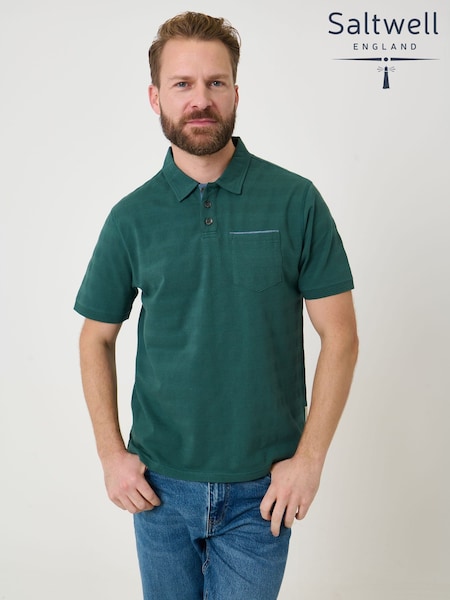 Saltwell Green Ribbed Short Sleeve Cotton Polo Shirt