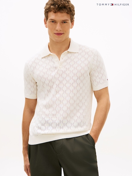 Tommy Hilfiger Cream Regular Fit Pointelle Polo Shirt