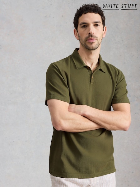 White Stuff Green Anderby Woven Polo Shirt