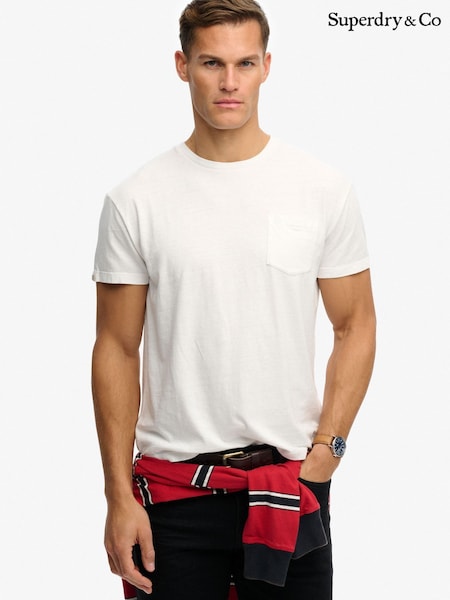 SUPERDRY White Classic Cotton Linen Pocket T-Shirt