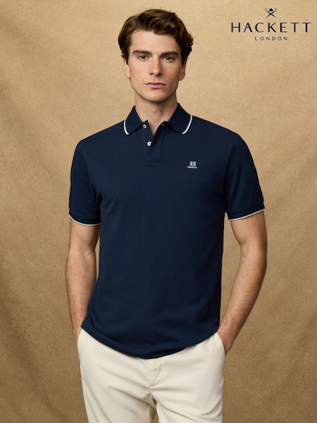 Hackett Blue Short Sleeve Tipped Polo Shirt