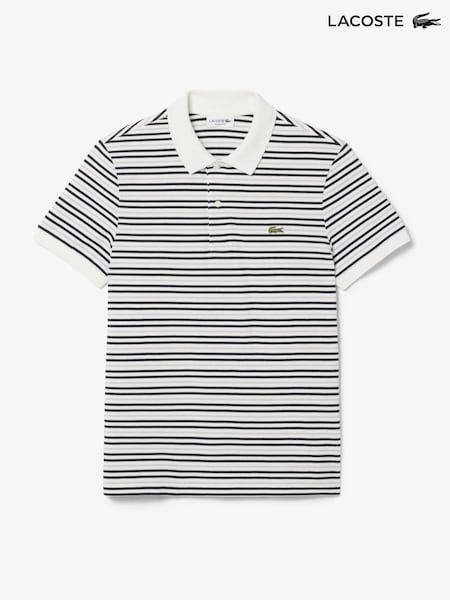 Lacoste Black Regular Fit Striped Mini-Piqué Polo Shirt