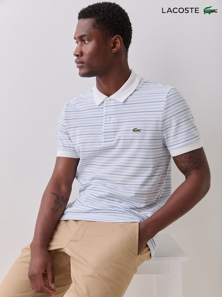 Lacoste Blue Regular Fit Striped Mini-Piqué Polo Shirt