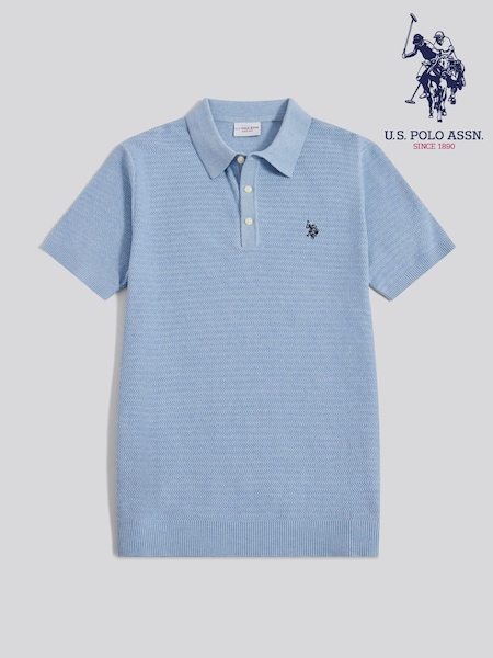 U.S. Polo Assn Blue Herringbone Texture Knit Polo Shirt
