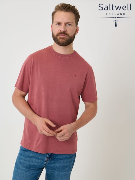 Saltwell Pink Garment Dye Cotton Jersey Crew Neck T-Shirt