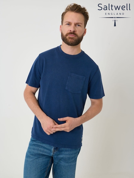 Saltwell Blue Dyed Crew Neck Cotton T-Shirt