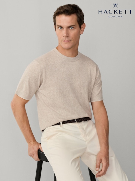 Hackett Brown Cotton-Linen Knitted Short Sleeve T-Shirt
