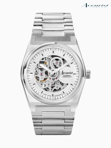 Accurist Silver Origin Skeleton Automatic Stainless Steel Bracelet 41mm Watch