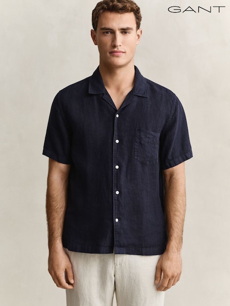 GANT Blue Garment Dyed Linen Pocket Shirt