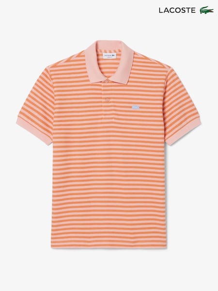Lacoste Orange Classic Fit Textured Striped Jersey Polo Shirt