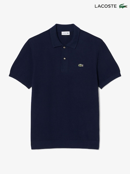 Lacoste Blue Fine Knit Moss Stitch Cotton Polo Collar Polo Shirt
