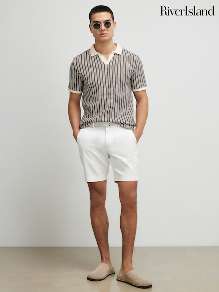 River Island White Slim Fit Crew Neck Stripe Mix Cotton Jersey T-Shirts 3 Pack