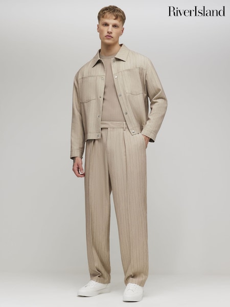 River Island Brown Relaxed Fit Pinstripe Trousers