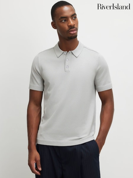 River Island Grey Slim Fit Essential Polo Shirt
