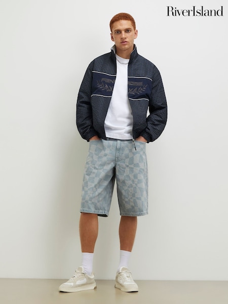 River Island Blue Checkered Denim Shorts