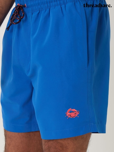 Threadbare Blue Crab Print Embroidered Quick Dry Swim Shorts