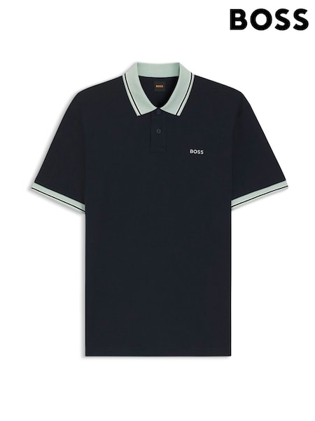BOSS Blue Regular Fit Contrast Collar Logo Polo Shirt
