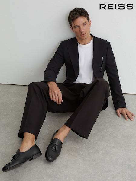 Reiss Black Harry Tumble Tumbled-Leather Tassel-Detail Loafers