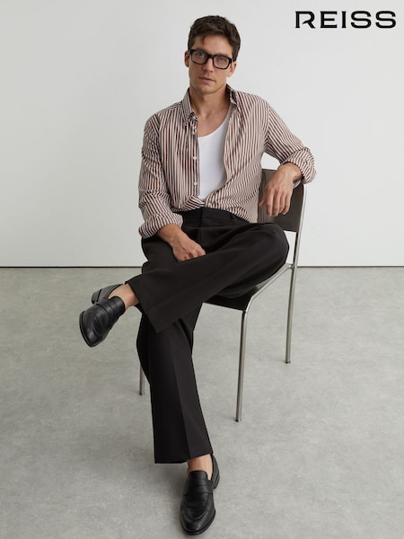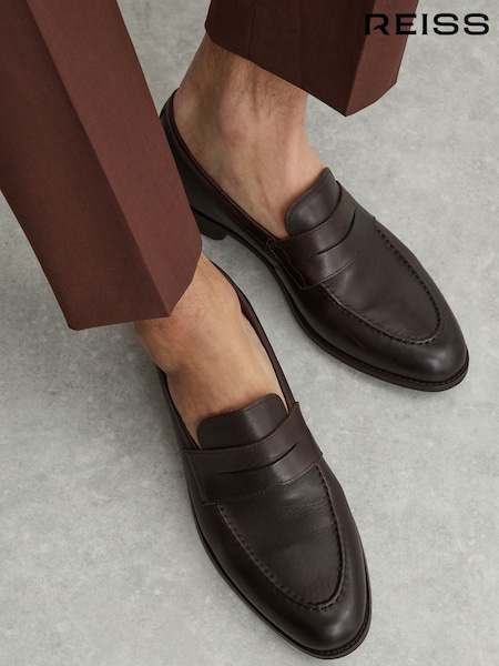 Reiss Dark Brown Peter Leather Saddle Loafers