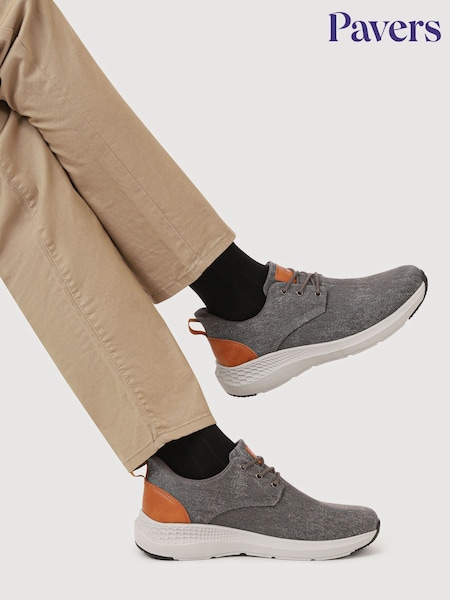 Pavers Grey Extra Wide Leather Memory Foam Lace Up Trainers