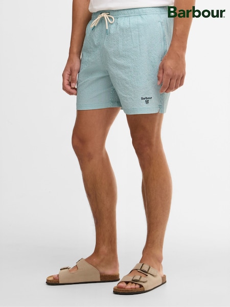 Barbour® Blue Gingham Seersucker Swim Shorts