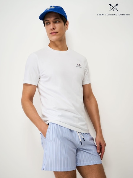 Crew Clothing Blue Oxford Stripe Seersucker Swim Shorts