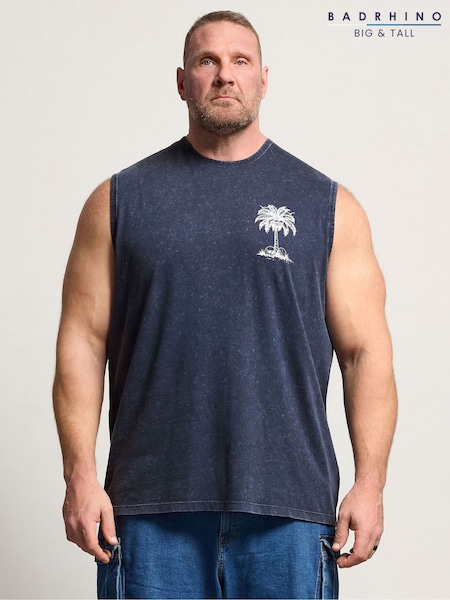 BadRhino Big & Tall Blue Acid Wash Skull Print Muscle Vest