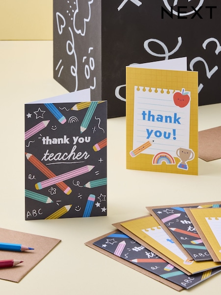 Set of 6 Yellow Thank You Teacher Cards