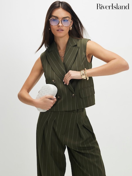 River Island Green Sleeveless Boxy Pinstripe Waistcoat