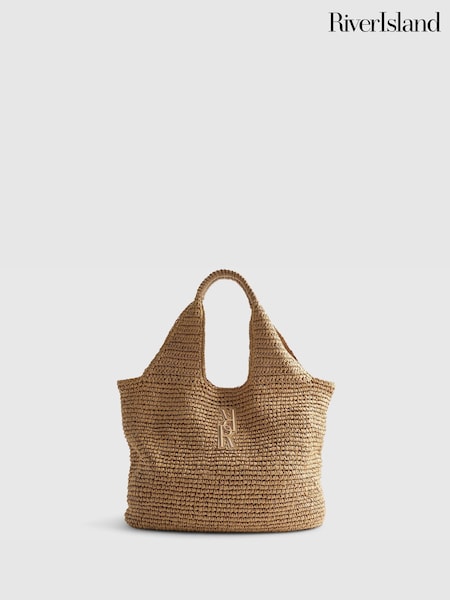 River Island Brown Raffia Shopper Bag