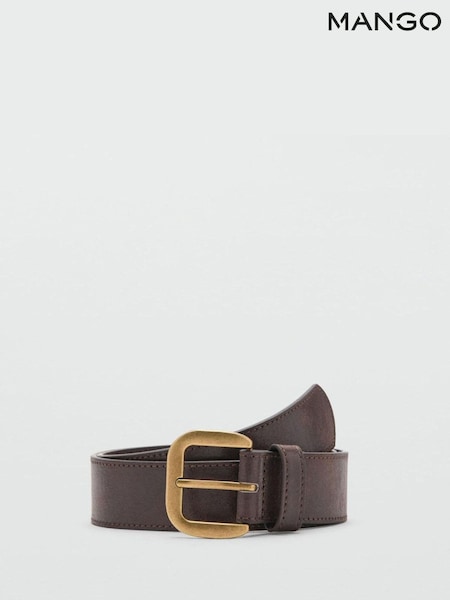Mango Dark Brown Suede Leather Belt With Gold Oval Buckle