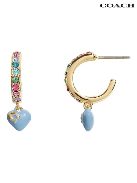COACH Blue Heart Charm Huggies Earrings