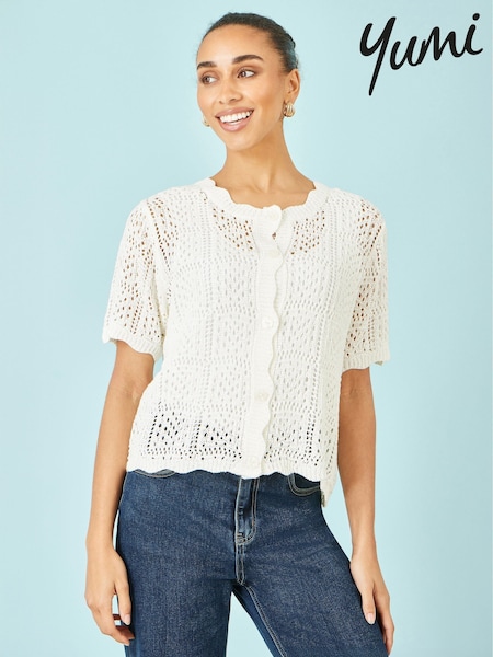 Yumi White Crochet Short Sleeve Cardigan