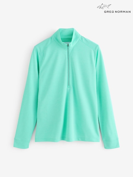 Greg Norman Green Ladies Freedom Performance Pullover Zip Golf Mid Layer Fleece