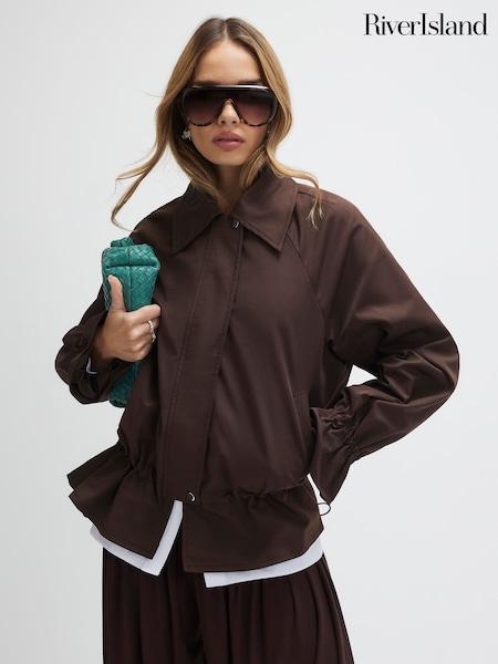 River Island Brown Drop Hem Casual Drawstring Jacket