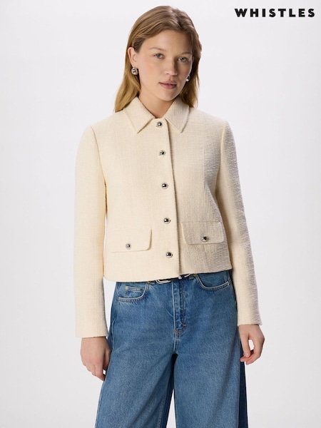 Whistles White 100% Cotton Collarless Jersey Jacket