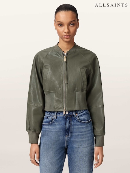Reiss Neutral Sonny Petite Leather Trucker Jacket