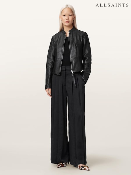 Sosandar Black Leather Biker Jacket With Faux Fur Trim