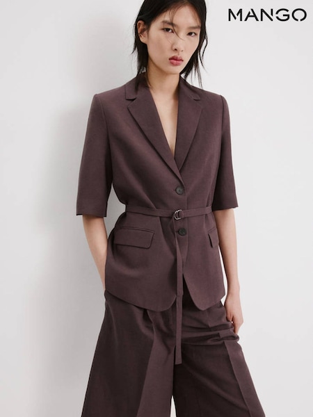 Mango Purple Short Sleve Tie Waist Blazer