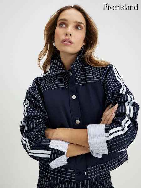 Whistles Blue 100% Cotton Pinstripe Denim Jacket