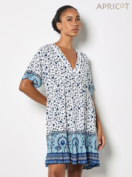 Apricot Blue Sarasa Floral Smock Mini Dress