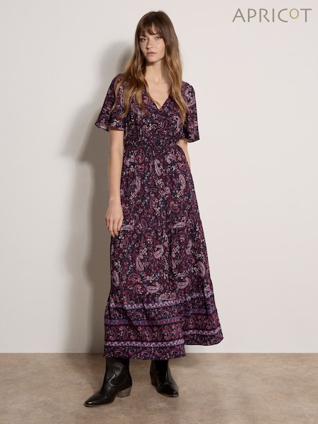 Apricot Pink Paisley Print Tiered Maxi Dress